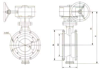 D343H0/16/25/蝸輪傳動硬密封蝶閥主要外形連接尺寸 (單位:mm)