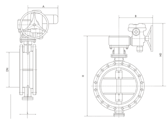D943H0/16/25/電動硬密封蝶閥主要外形連接尺寸(單位:mm)